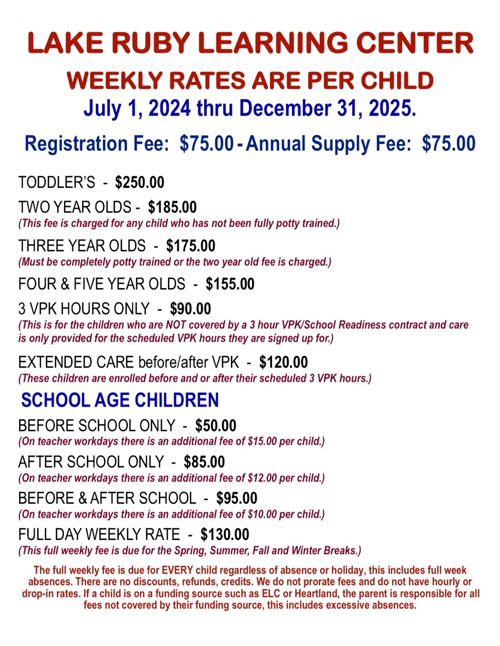 Here at LRLC we offer programs for toddlers, preschool, VPK, and school-age children ages 1-12. We create a warm, engaging, and safe environment where your child can thrive. Our spacious center is thoughtfully designed to spark curiosity and inspire young minds through interactive, educational activities tailored to their developmental needs. We foster a friendly, nurturing atmosphere where children feel valued and encouraged to explore their creativity and build confidence. Our dedicated team of educators crafts fun, hands-on learning experiences that blend play with skill-building, promoting social, emotional, and cognitive growth. From colorful classrooms to engaging group activities, every moment is designed to make learning fun, joyful and meaningful. Your child's well-being and safety is our top priority—our facility is equipped with secure entry systems, trained staff, and age-appropriate materials to ensure peace of mind. We invite you to visit and see how our caring community empowers your child to grow, learn, and shine in a supportive, family-friendly environment!